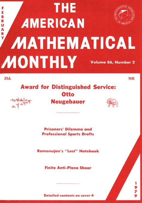 Web explore the current issue of the american mathematical monthly, volume 131, issue 1, 2024 The monthly publishes articles, as well as notes and other features, about mathematics and the profession.