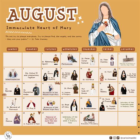 August Catholic Calendar. Assumption of the blessed virgin mary [holy day of obligation] daily. Web thursday, august 15, 2024.