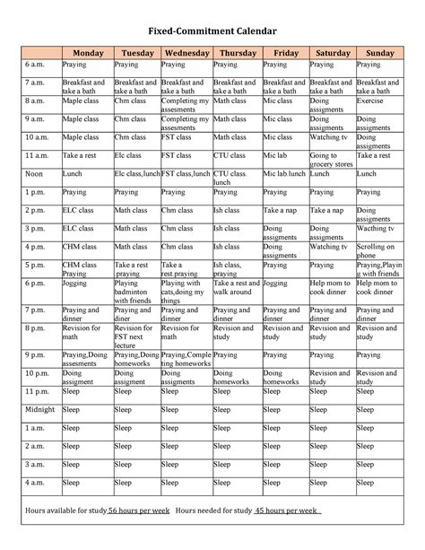 Web a fixed commitment calendar provides you with an aerial view of your weekly schedule. Using a fixed commitment calendar helps account for all of your time, so you will be less likely to waste time. Web a fixed commitment calendar provides you with an aerial view of your weekly schedule. It shows you how you are using all 168 hours you get. Monday tuesday wednesday thursday friday saturday sunday 5 a.m. It can help you stay organized and know what to anticipate from day to day. Monday tuesday wednesday thursday friday.