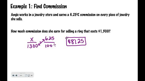Commission Math Definition. A fee paid for services, usually a percentage of the total cost. City gallery sold amanda's painting for $500,.
