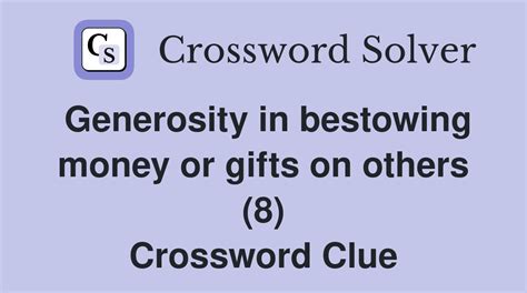 Crossword Clue Generosity. Web the crossword solver found 60 answers to generosity, 7 letters crossword clue. Today's crossword puzzle clue is a quick one: