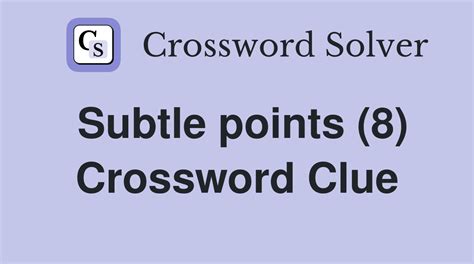 Subtle Point Crossword Clue. The crossword solver finds answers to. Web the crossword solver found 30 answers to subtle point (6), 6 letters crossword clue.