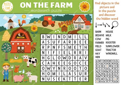 Math puzzle, farm animals and farm barn in cartoon style, education