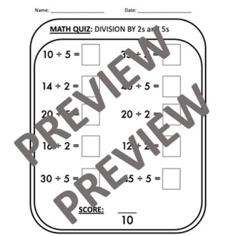 The Individual Division Fact 5 (E) math worksheet from the Division
