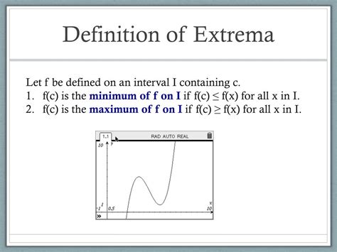 Extrema Math Definition. We say that f (x) f ( x) has an absolute (or global) maximum at x = c x = c if f (x) ≤ f (c) f ( x) ≤ f ( c) for every x x in the domain we are working on. Web extrema is the general name for maximum and minimum points.