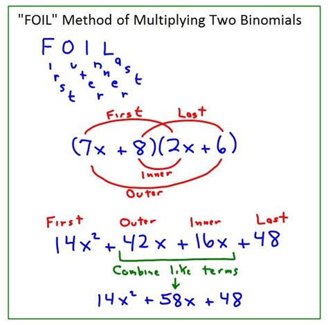FOIL Method of multiplying two binomials math poster collegeteaching