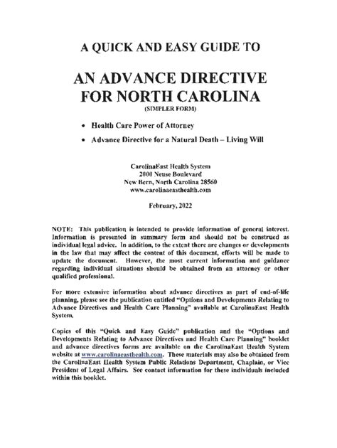 Free North Carolina Advance Directive Form PDF eForms
