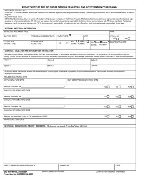 DAF Form 108 Department Of The Air Force Fitness Education And