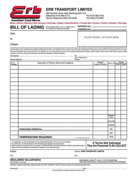 Bill Of Lading Form Doc
