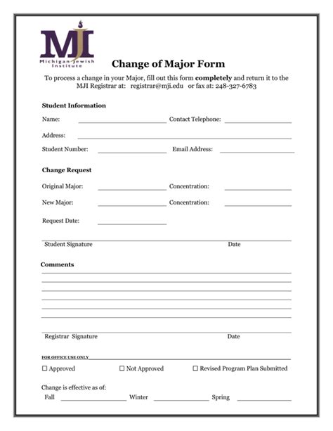 Change of Major Form