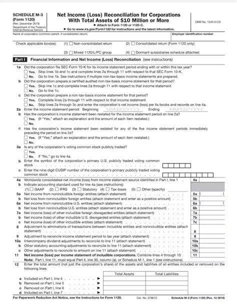 Form M-3 1120. Net income (loss) reconciliation for corporations with total assets of $10 million or more. December 2019) department of the treasury internal revenue service.