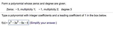 Find the polynomial with integer coefficients having zeroes and. Web use synthetic division to find the zeros of a polynomial function. Web the polynomial can be up to fifth degree, so have five zeros at maximum. Find the polynomial with integer coefficients having zeroes and. Find a polynomial that has zeros. Use the fundamental theorem of algebra to find complex. Please enter one to five zeros separated by space.