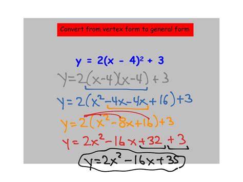 How To Get From Vertex Form To Factored Form. From there, you must complete the square (see above!). Expand the vertex form into standard quadratic form;
