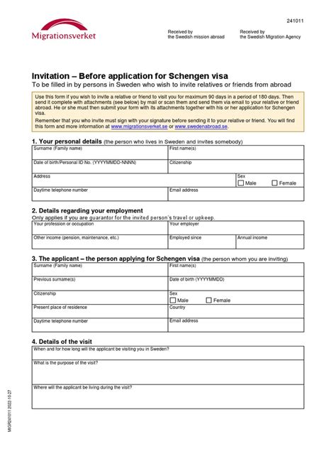 To be filled in by persons in sweden who wish to invite relatives or friends from abroad. To be filled in by persons in sweden who wish to invite relatives or friends from abroad.