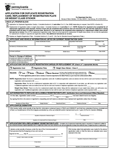 Mv44 Form Pa. Web to request a duplicate registration card or replacement standard issue registration plate because yours has been lost, stolen or.