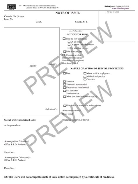 New York Note Of Issue Form. A form that is filed in new york state court and served on all parties confirming that the parties have. Filing by fax cover sheet.