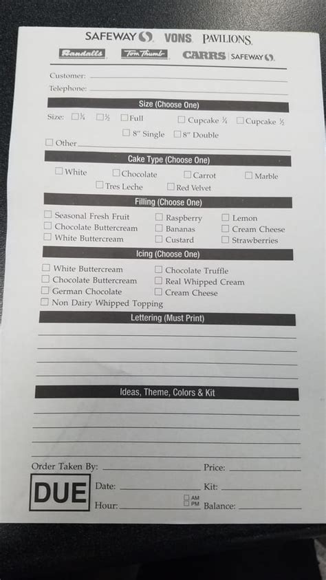 Safeway Cake Order Form. Web fortunately, the answer is yes! Safeway, a popular grocery store chain, allows customers to order custom cakes online,.