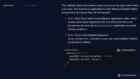 Shouldfocuserror React Hook Form. Web i am using react hook form like so: But i believe you could take the advantage of this newly released ref from controller for.