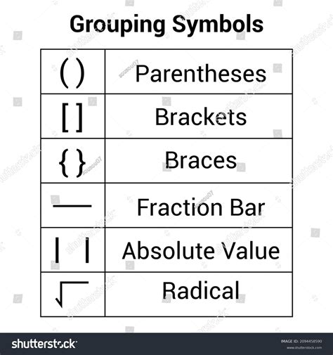 Group Symbols Math. ( ), [ ], { }, parentheses: Web the grouping symbols commonly used in mathematics are the following: