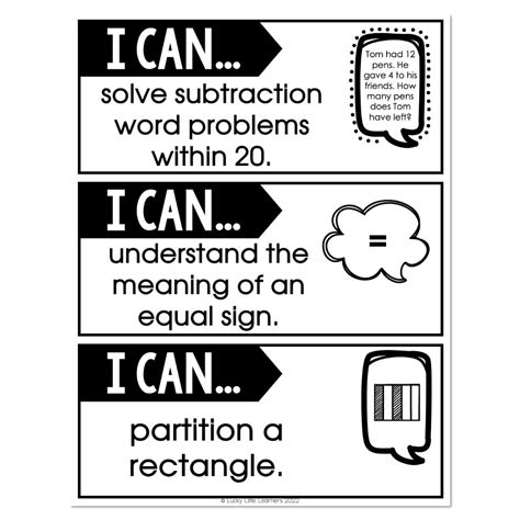 Common Core Standards I Can Statements for 1st Grade MATH Classful