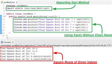 Web importing the math library: Web math class consists of methods that can perform mathematical operations and can make long calculations a bit easy. Java’s math library resides in the `java.lang` package, which is automatically available.