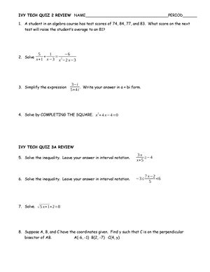 Ivy Tech Math 136. Web collegewide course outline of record.