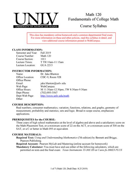 Math 120 Unlv. This class has mandatory online homework and a common departmental. Desired unlv math course act score sat score aleks score;