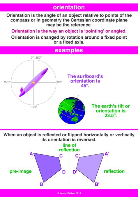 Math Definition Of Orientation. • the angle of an object compared to compass points. Or the axes of a cartesian plane.