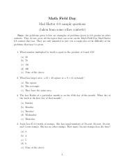 Math Field Day Sample Questions. The problems given below are examples of. The measure of an angle is 3 times the measure of its complement.