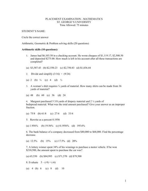Stony Brook Math Placement Practice Diagnostic Placement Stemify