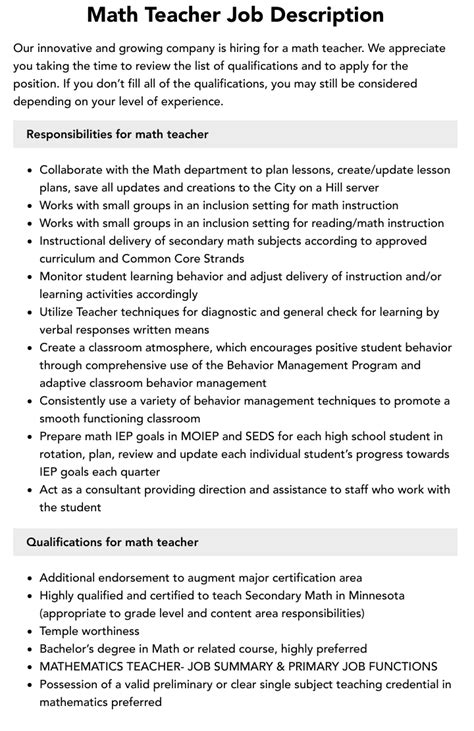 Math Teacher Resume Examples nayakelapa
