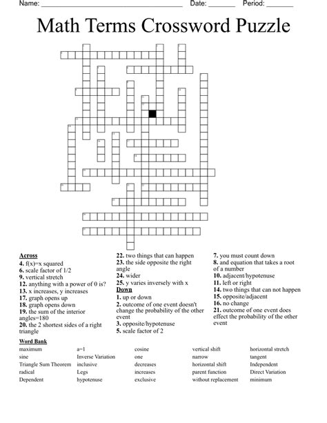 Math Crossword Puzzle WordMint