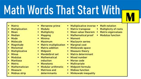 Math Words That Start With M. Web 18 rows magnitude of a vector. Find definitions of all math terms with letter m, explained with informational pictures and.
