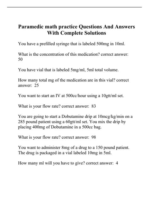 26 asked eight basic drug calculation questions, two on calculating the appropriate endotracheal. Web the study by bernius et al. 1mg/250ml (1000mcg/250ml = 4mcg/ml) calculated drip rate: Web paramedic med math (practice) 3.4 (17 reviews) get a hint the physician orders lasix 20 mg iv stat for a child weighing 34. Web calculations paramedics will need to perform include such items as: