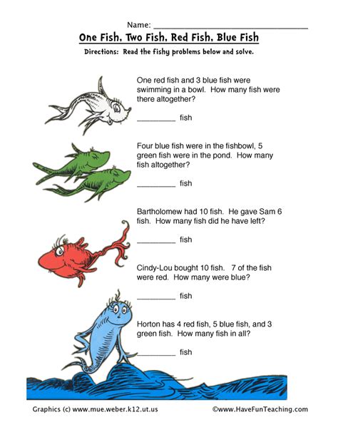 One Fish, Two Fish Activities w/ FREE Dr Seuss Worksheets pdf