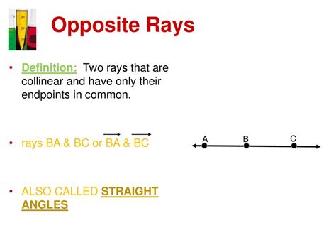 Web opposite rays are two rays that both start from a common point and go off in exactly opposite directions.