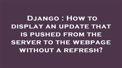 Django Update Page Without Refresh. The server sees there's no update, so it doesn't answer. Web learn how to update a page in django without refreshing the page.
