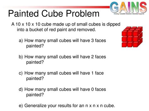 Painted Cube Math Problem. Then you take your cube and dip it. Imagine you build a 3 × 3 × 3 cube from 27 small white unit cubes.