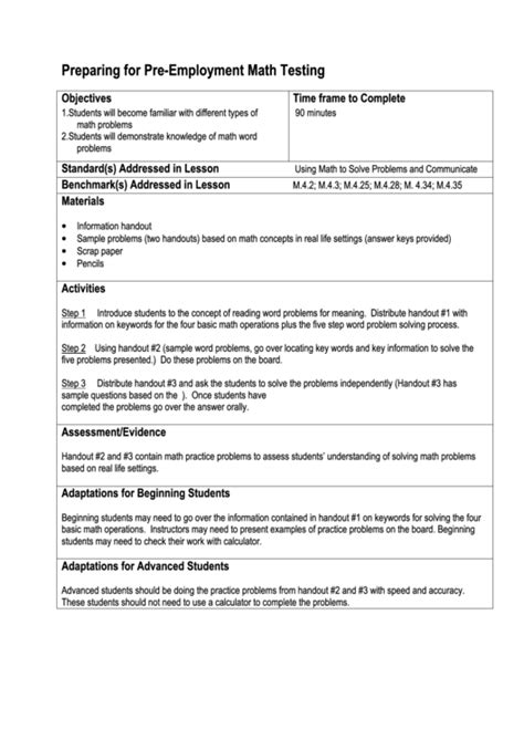Pre Employment Math Test. This test consists of 12 basic math skills questions.