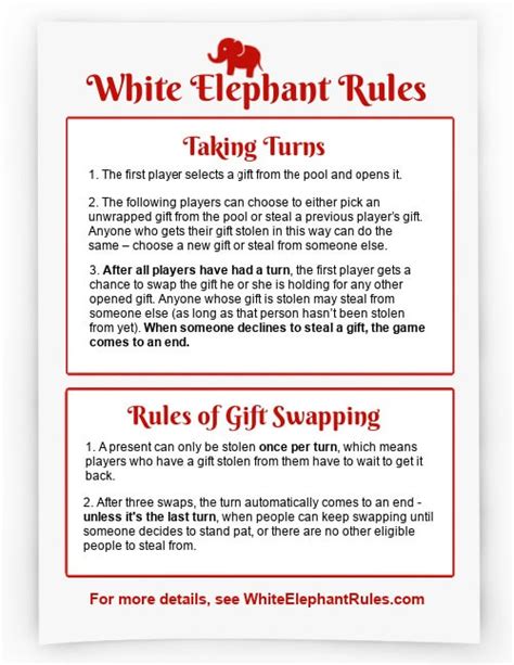 White Elephant Rules Printable. Have each person draw a number out of the box. The player with number 1 gets to choose the first gift.