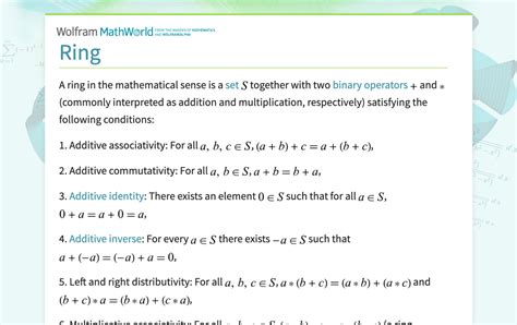 Ring Definition Math. Web a ring in the mathematical sense is a set s together with two binary operators + and * (commonly interpreted.