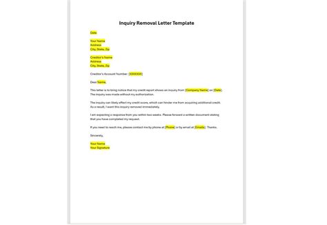 Web you can also use our credit inquiry removal letter template to get started. Evidence that supports your claims, copies of the credit report with errors properly highlighted,. Web you can also use our credit inquiry removal letter template to get started. A credit inquiry removal letter is used to alert the credit bureaus of an unauthorized. Web how to write a credit inquiry removal letter download credit inquiry removal letter templates:. Once this letter is complete, you can mail it to the appropriate. Web inquiry removal letter template. What is a credit inquiry removal letter? [your name] [your address] [date] [credit bureau name] [credit bureau address] dear [credit bureau], i recently obtained my credit report and found a hard inquiry. When you mail the letter, you need to include: Dispute a hard inquiry online.