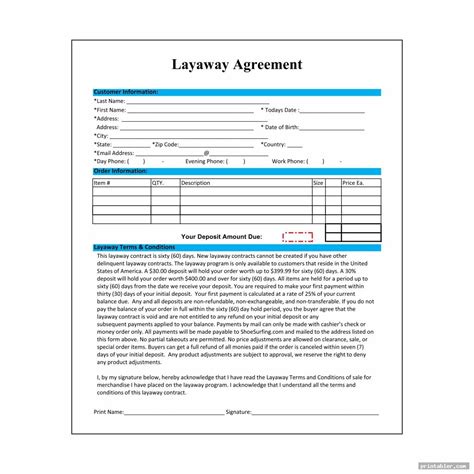 Layaway Terms And Conditions Template