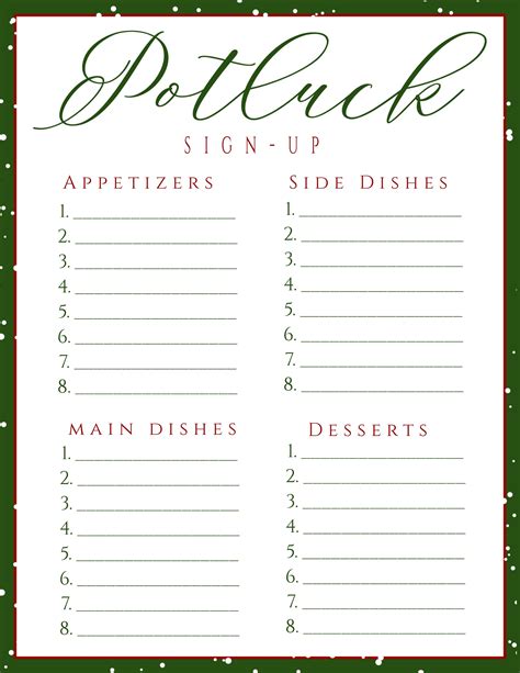 Office Lunch Potluck Sign up Sheet PRINTABLE Template, Work Celebration