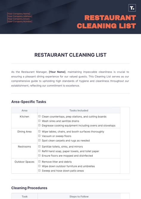 Restaurant Cleaning List Template. Following a comprehensive checklist will eliminate the time you’ll spend deciding. A restaurant cleaning checklist is a helpful tool that contains a list of.