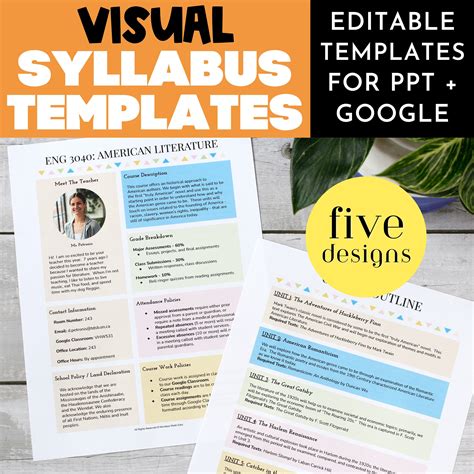 Editable Class Syllabus, Visual Syllabus Template, Templates for