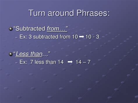 Turn Around Phrases In Math. Web solve example 5 as follows: Because the word divide is a leading keyword that defines into, underline the words before.
