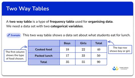 Two Way Table Math Definition. Web a two way table is a way to organize and interpret the intersection of two categorical variables. Columns correspond to the values of one variable, while the rows relate to the other.