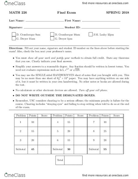 Usc Math 226. Wph b28 calculus iii fall 2023 time: Web math 226 is a coordinated course and a common final exam is offered at the end of each semester.