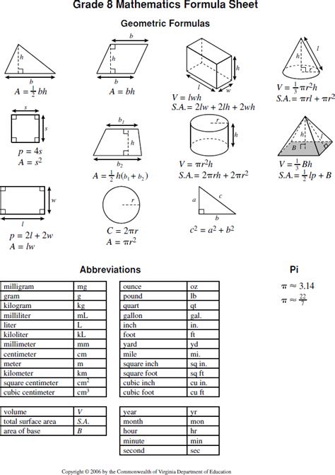 Grade 8 formula sheet (pdf) eoc algebra i formula sheet (pdf) eoc geometry formula sheet. Written requests to the virginia. All others should direct their.